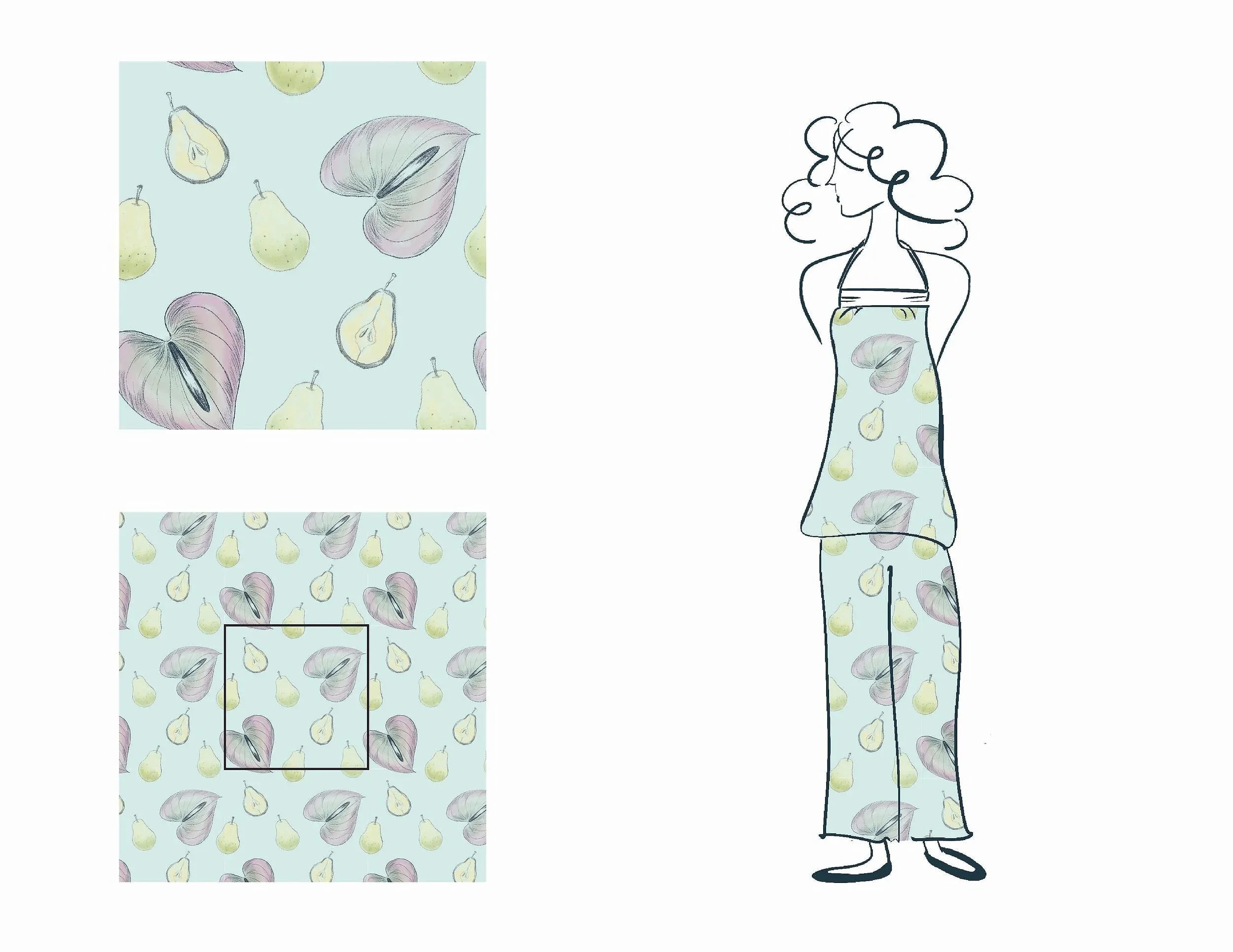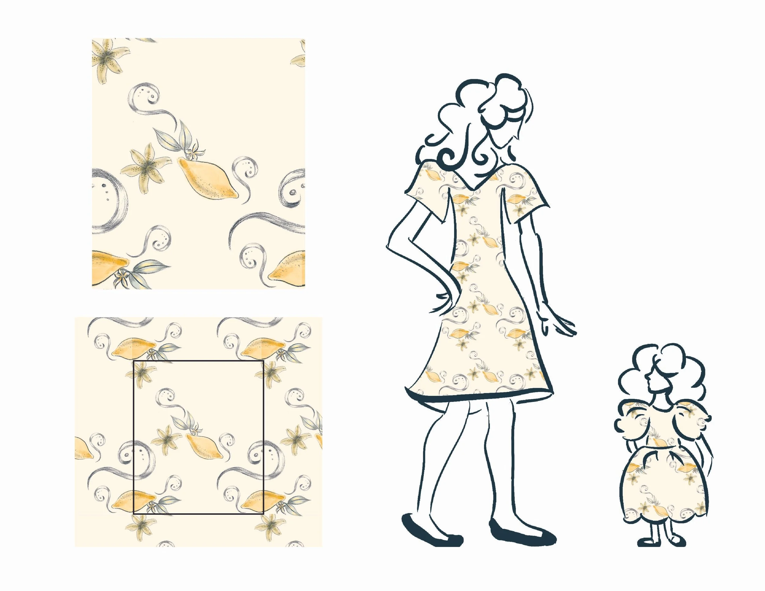 This print series was created as a Spring/Summer collection inspired by the Florida neighborhoods, drawing from themes of family, warmth, and the vibrant fruits and flowers that inhabit most backyards.